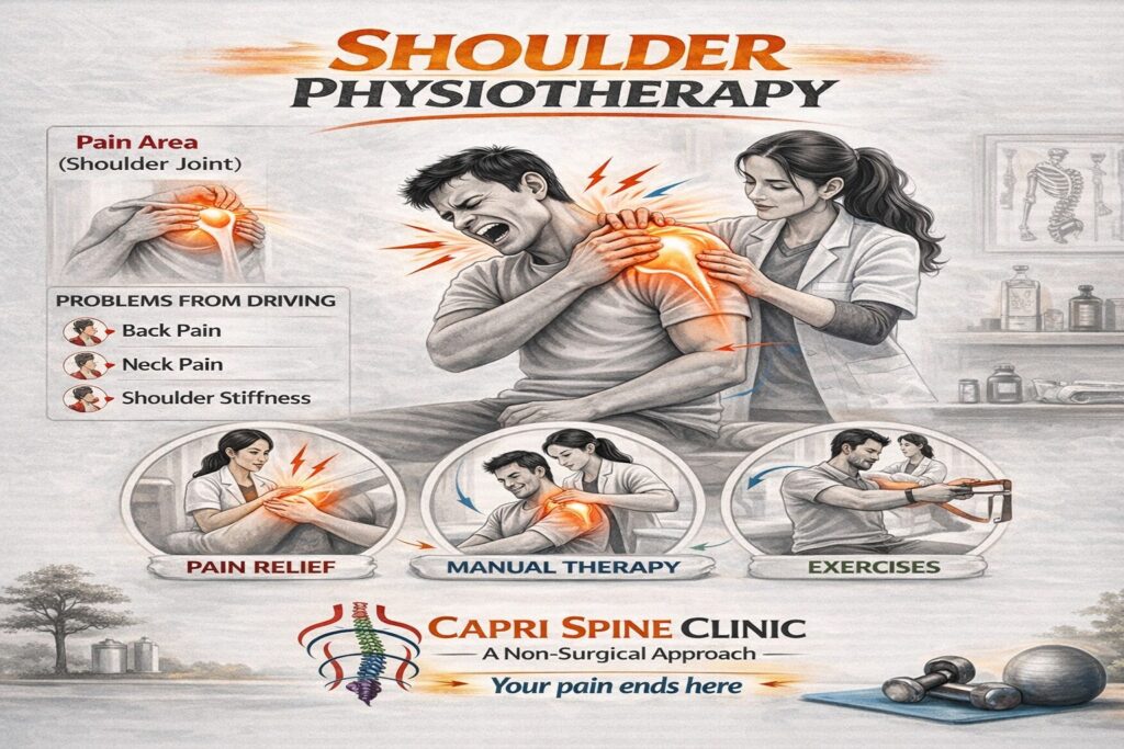 If you are suffering from shoulder pain, stiffness, or difficulty moving your arm, consult the experienced physiotherapists at Capri Spine Clinic. Our specialists provide advanced physiotherapy treatment for shoulder pain in Preet Vihar Delhi, focusing on reducing pain, improving mobility, and restoring shoulder strength without surgery. Early treatment and the right physiotherapy techniques can help you recover faster and return to your daily activities comfortably.